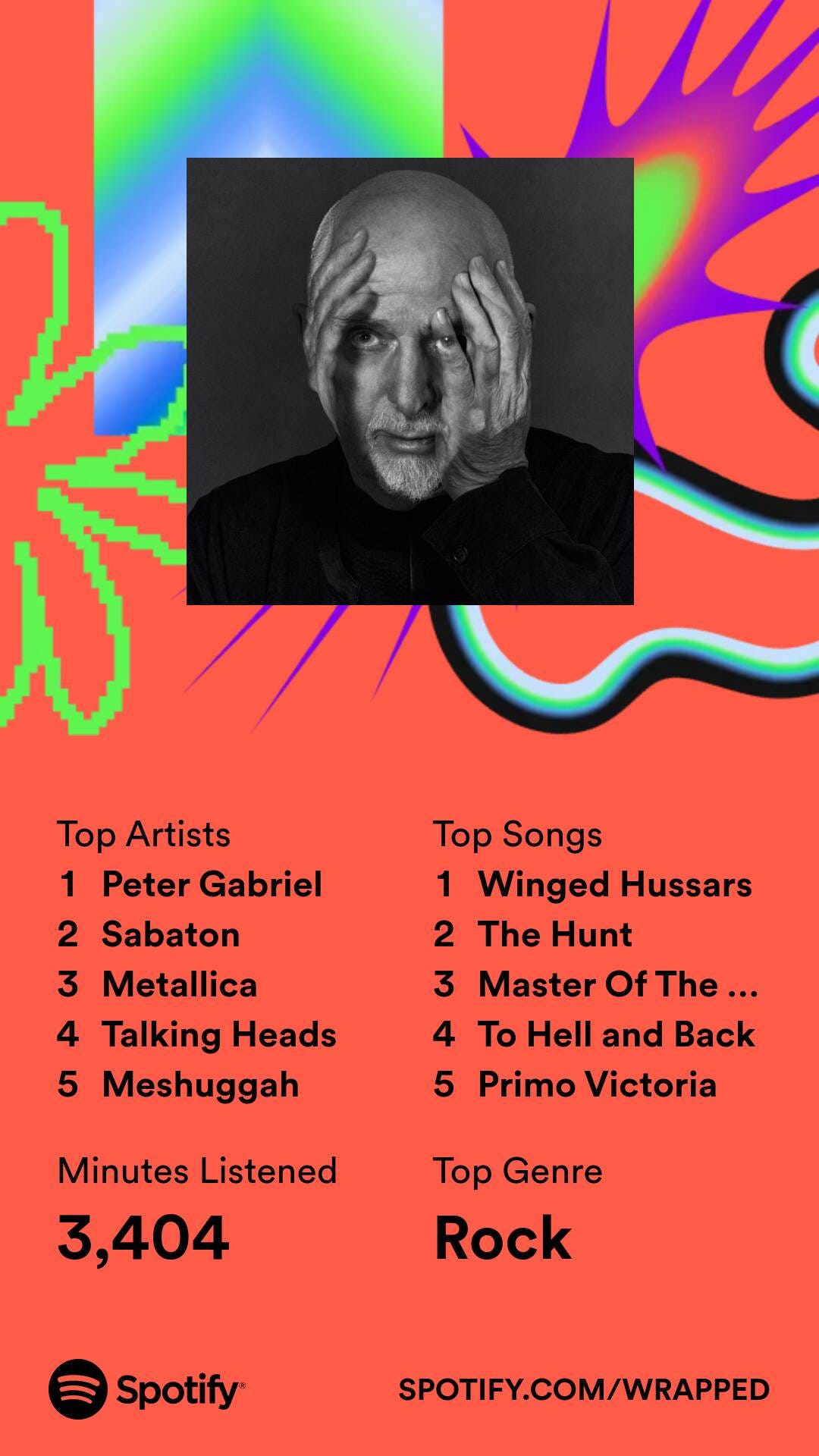 The biggest giveaway of the place that music held in my 2023 lies in the presence of Sabaton in second place, with three of their songs on the most-played list. The Swedish, military-obsessed power metallers are a whole heap of silly fun and 2023 is when I finally fell for the charms of their cheesy histrionics. The reason is that I saw them play live earlier in the year with my son and daughter and interviewed the band in October (with my star-struck son tagging along). I am not 'really' listening to Sabaton when I listen to Sabaton; I am listening to the pleasures of fatherhood and the easy pleasures of metal painted in primary colours.